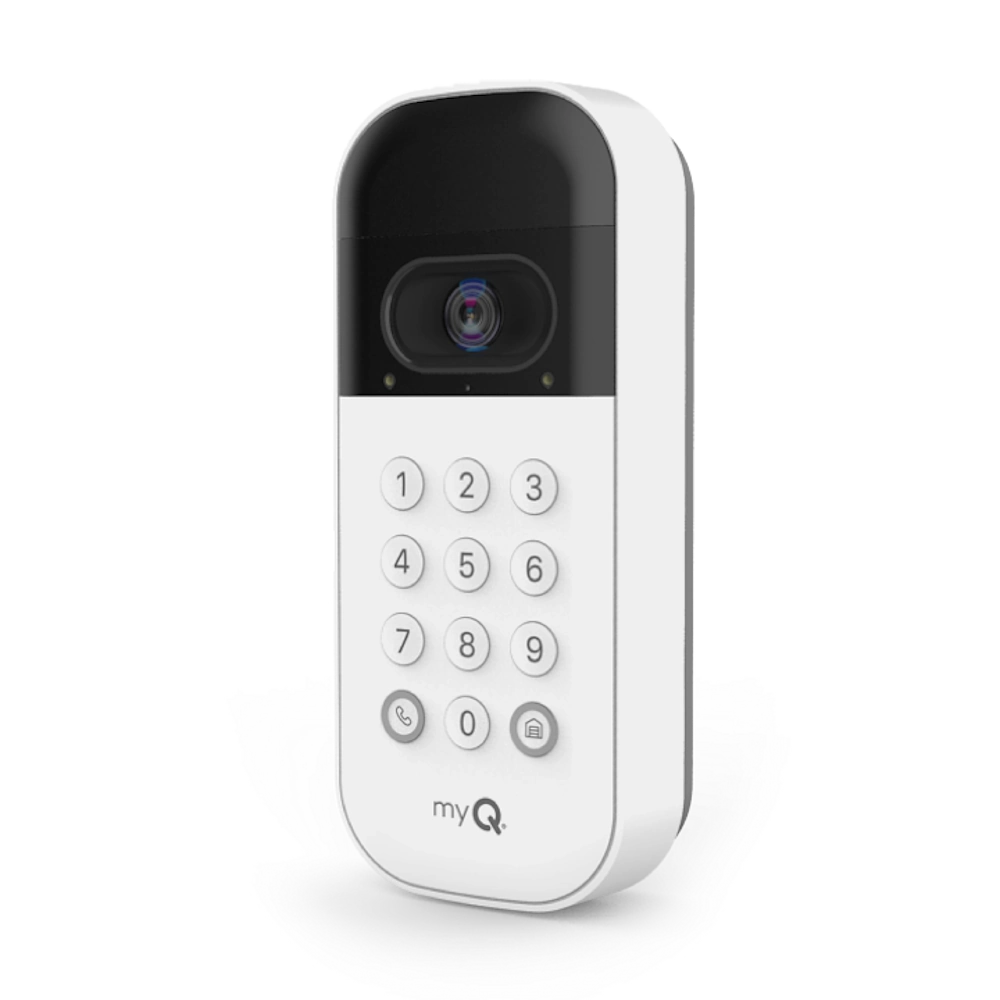 This product combines door access control with built-in video monitoring. It replaces a standard exterior keypad, offering personalized PIN codes for household members, guests, or service providers. The integrated camera gives a live view of the garage entry area right through the MyQ app. Motion alerts help increase awareness of activity around the property. The combination of access convenience and visual security enhances overall home monitoring without requiring an exterior doorbell or third-party camera system.