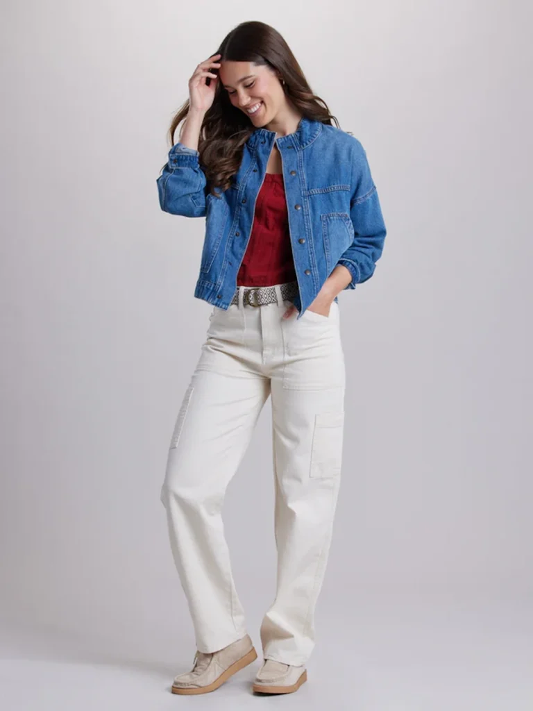 Ashton brings a sleeker edge to the cargo category. With its high waist, straight-leg cut, and refined detailing, it sits comfortably between classic workwear and modern street style. The stretch herringbone fabric offers both comfort and structure, creating a flattering silhouette without feeling restrictive.